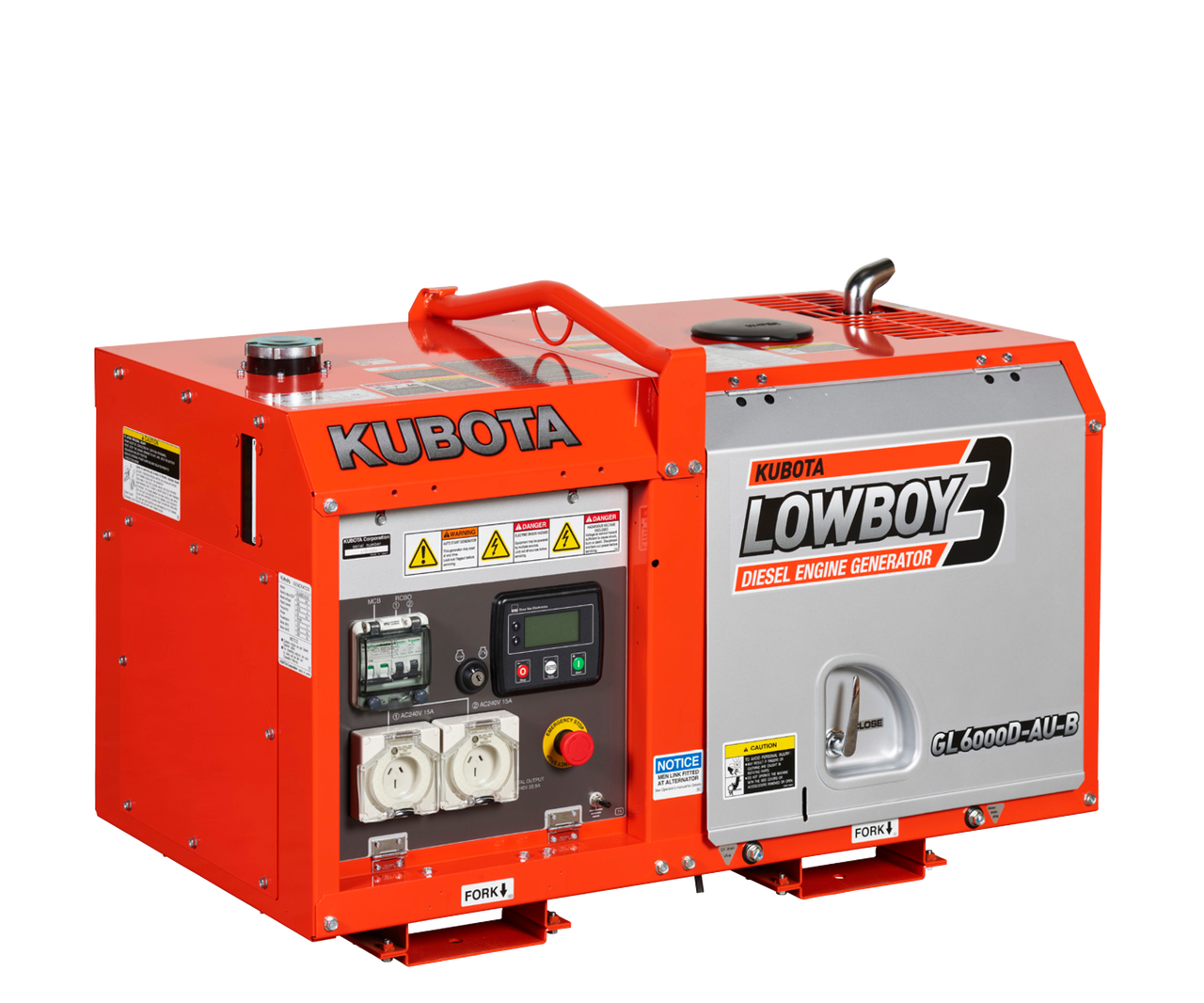 The Kubota GL6000 is a two pole, silent type, direct coupled, single phase diesel engine with a capacity of 6kVA at 3000RPM.